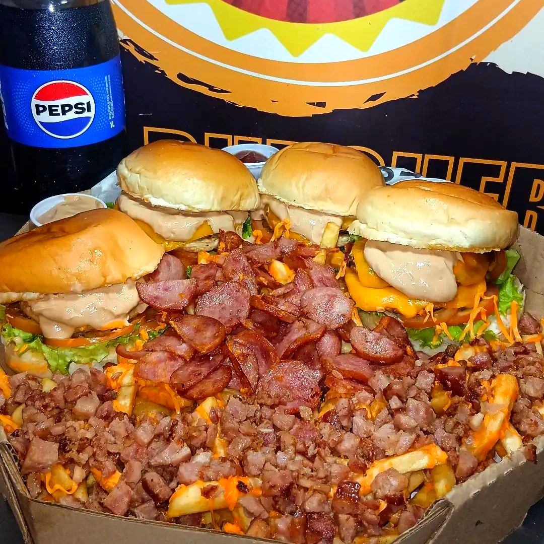 4 deliciosos x-burguer ao cheddar com um maravilhoso molho especial da casa,com uma porção grande de batata crocante com calabresa e bacon,mas refrigerante litro.