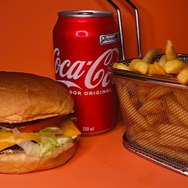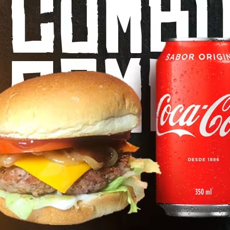 Hambúrguer artesanal com um suculento smash de 100g, coberto com queijo cheddar derretido em um pão selado à perfeição. Acompanha uma refrescante salada de tomate, cebola e alface americana. O toque especial fica por conta do molho barbecue e da maionese verde. Para completar, uma porção de 200g de batatas fritas crocantes e uma lata de Coca-Cola de 350ml, complementam essa experiência gastronômica inigualável.