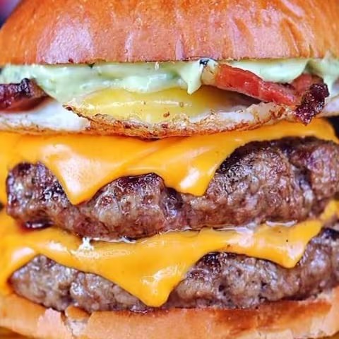 Delicioso Hambúrguer Artesanal. Pão Selado, 2x blend de 100g, Tiras de Bacon Crocante, ovo, 4 fatias de Queijo Cheddar, Salada: ( Tomate, Cebola, picles), Molho Barbecue, Maionese.