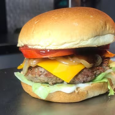 Delicioso Hambúrguer Artesanal. Pão Selado, Duas carnes de 100g, Queijo Cheddar, Molho Barbecue, Maionese e Salada: ( Tomate, Cebola, Alface Americana).