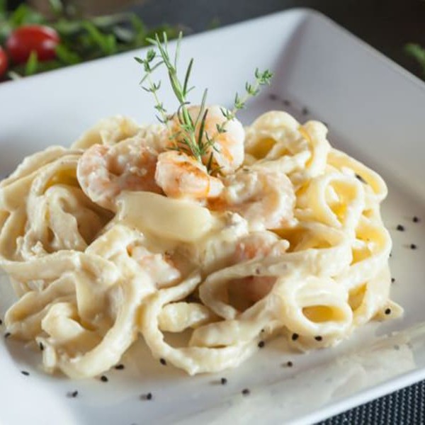 500g Talharim Ao Molho Branco De Camarão + Molho De Pimenta Massa