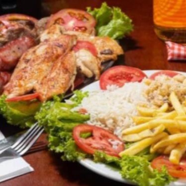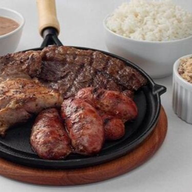 O 'Frango e Toscana' é um churrasco individual de primeira linha, composto por um saboroso frango e uma suculenta linguiça toscana. Acompanha uma série de acompanhamentos saborosos e cuidadosamente preparados para complementar a experiência gastronômica. O inconfundível feijão tropeiro, o arroz soltinho, o macarrão al dente, uma salada com maionese cremosa e um fresco vinagrete. Esta combinação de sabores torna este prato um autêntico festival para o seu paladar, onde cada ingrediente desempenha um papel fundamental para uma refeição satisfatória e deliciosa.