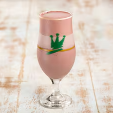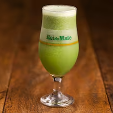 Mate batido com xarope de menta e polpa de fruta.
