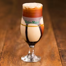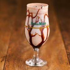 Delicioso Mate batido com leite, sorvete de creme, cappuccino e cobertura de chocolate.