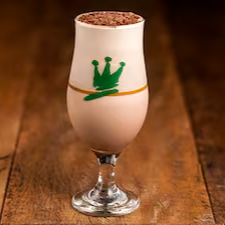 Delicioso Mate batido com leite, sorvete de creme, flocos de chocolate e cobertura de chocolate.