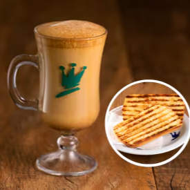 Escolha seu pão e acompanhamento para o pão na chapa acompanhado de um delicioso cappuccino cremoso.