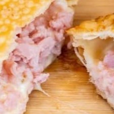 Delicioso pastel recheado com queijo e presunto.
