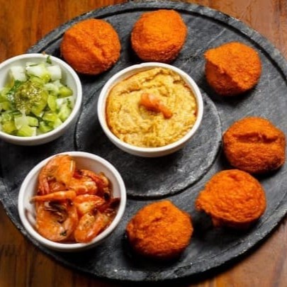 3 mini acarajés acompanha vatapá, salada e camarão ao alho e óleo, uma delicia de sabor!
