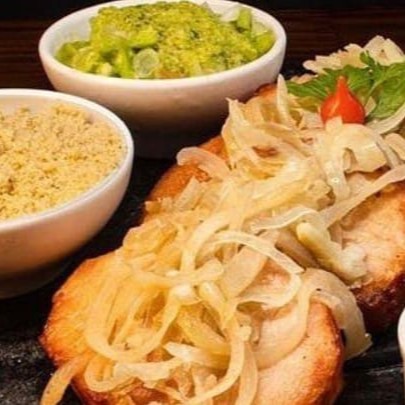Acompanha arroz, farofa, vinagrete