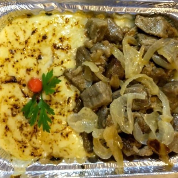 Ô gente, e essa delícia aqui!? Pirão de aipim, queijo mussarela todo maçaricadinho e carne do sol e cebola Dois tamanhos: P com Aproximadamente 700 gramas G com Aproximadamente 1.400 gramas