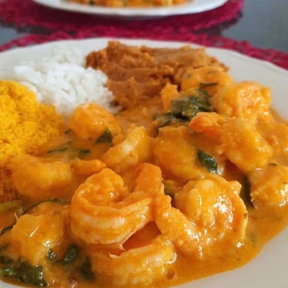 Moqueca de camarão, acompanhado com: arroz, vatapá e farofa . Melhor moqueca da Bahia!