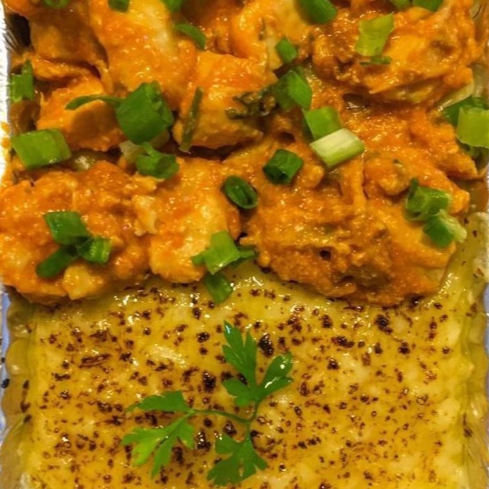 Pirão de aipim cuidadosamente preparado, enriquecido com queijo muçarela maçaricado, que agrega uma textura cremosa e gratinada. O frango, incrivelmente suculento, completa essa combinação perfeita. Acompanha porção de arroz e salada grátis. Dois tamanhos: M com Aproximadamente 700g Para 2 pessoas G com Aproximadamente 1.400kg para 3 pessoas Almoço ou Jantar
