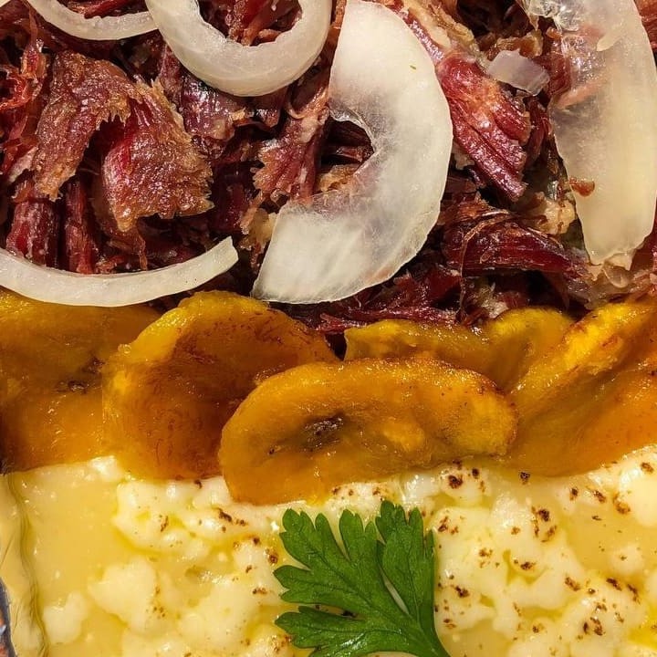 Prato executivo de Carne do Sol, Pirão de Aipim com Queijo Maçaricado por cima, ( 400g total do prato) Almoçou ou Jantar.