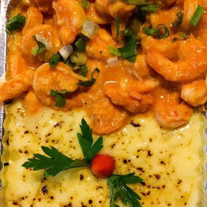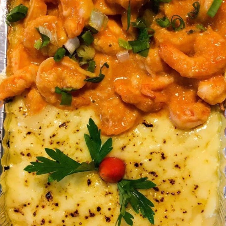 Prato executivo de camarão ao molho, Pirão de Aipim com Queijo Maçaricado por cima, (400g total do prato) Almoço ou Jantar