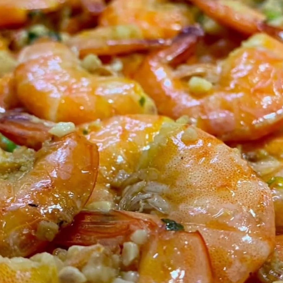 Isso mesmo! 1kg de suculentos camarões ao alho e óleo! Porção para 3 pessoas!