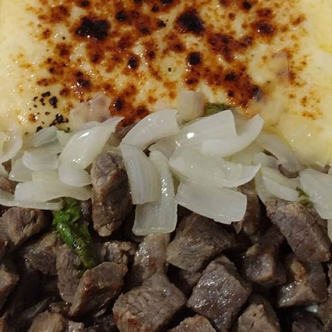 Pirão De Aipim Com Queijo Maçaricado E Salada Vinagrete