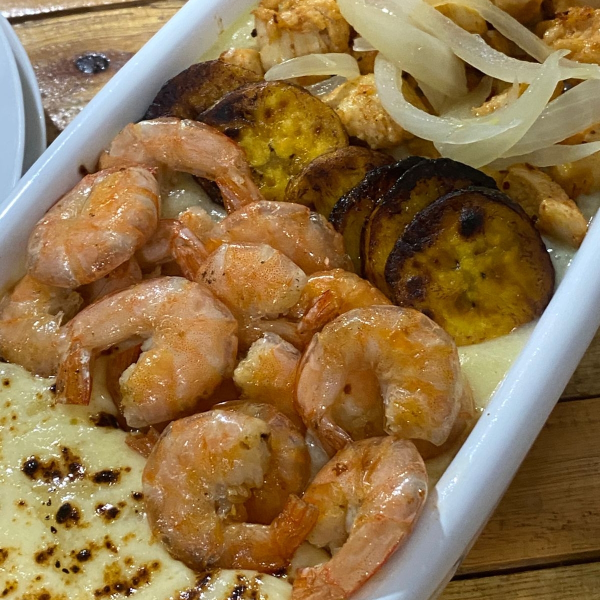 Pirão De Aipim Com Queijo Maçaricado, Banana Da Terra E Salada