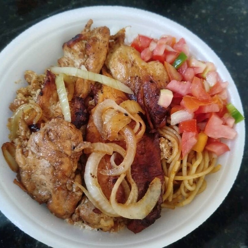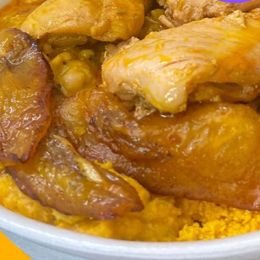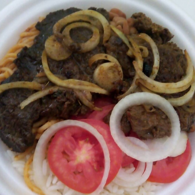 Acompanhamentos: arroz, farofa, vatapá,caruru, feijão fradinho e banana frita