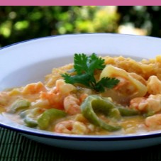 Moqueca de camarão preparada no estilo tradicional, com tempero marcante e camarões suculentos. Porção individual. Selecione 3 acompanhamentos para completar sua refeição.