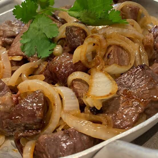 Fígado acebolado bem temperado, preparado na hora com cebola refogada que realça o sabor. Porção individual, ideal para uma refeição caseira e bem servida.