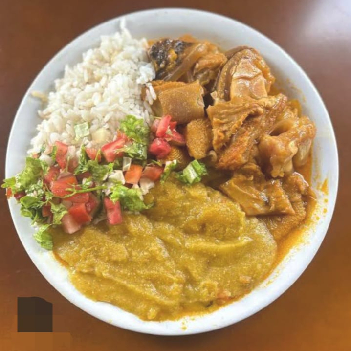 Mocotó bem temperado e cozido lentamente até ficar macio e encorpado. Acompanha arroz branco soltinho e pirão cremoso para uma refeição completa.