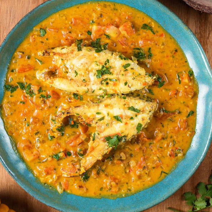 Moqueca de peixe corvina preparada no estilo tradicional, com tempero marcante e peixe suculento. Porção individual. Selecione 3 acompanhamentos para completar sua refeição.