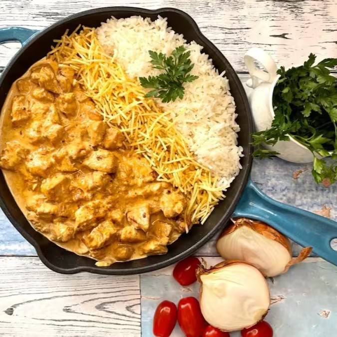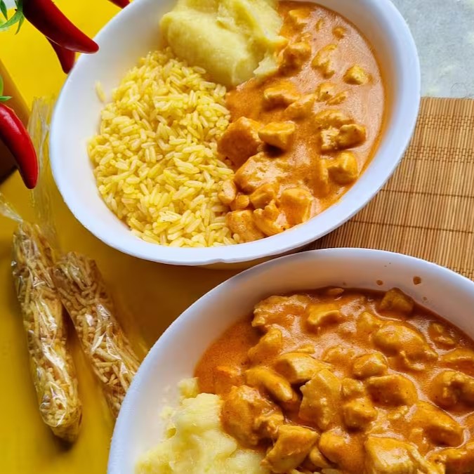 Peito de Frango Cortado em Cubos temperado com sal e especiarias, cozido com molho de tomate, catchup e mostarda e finalizado com creme de leite, dando toda cremosidade ao seu strogonoff.