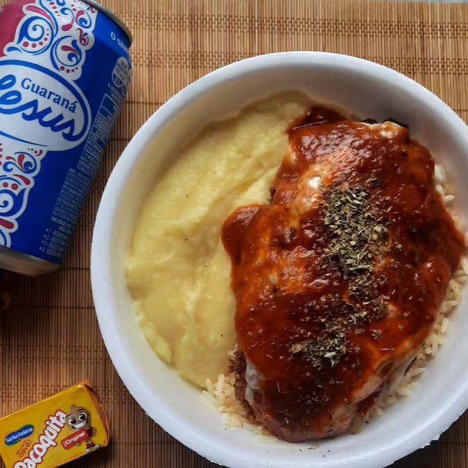 Acompanha: Arroz Temperado, Purê de Batata e Batata Palha