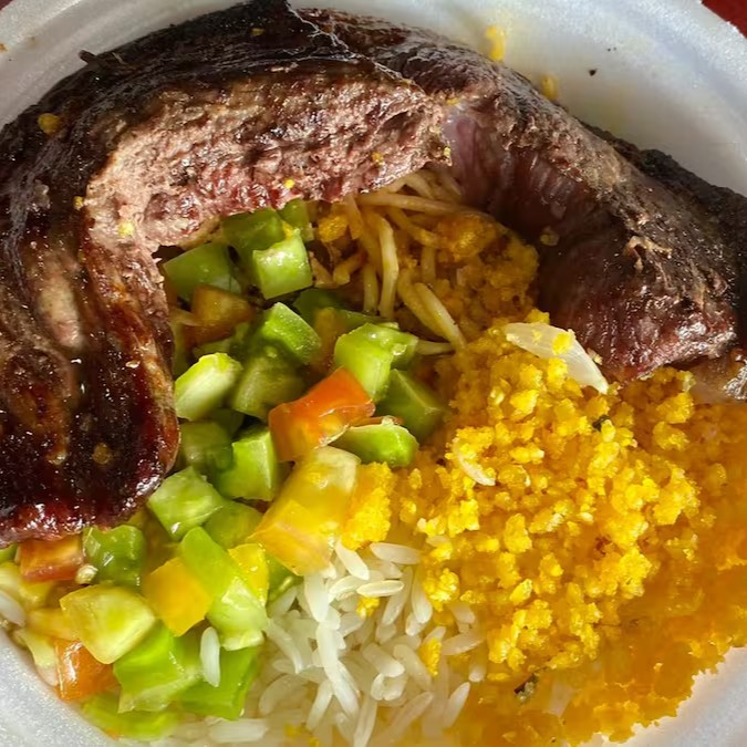 Escolha seus complementos e monte o seu prato com 2 opções de carne.