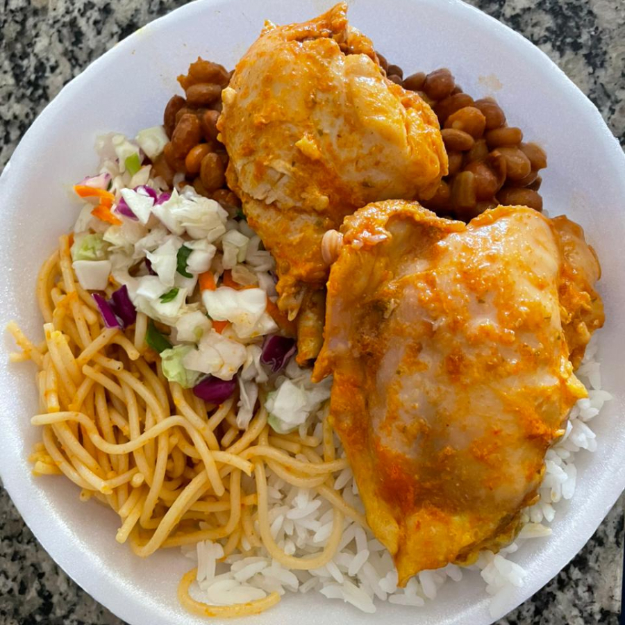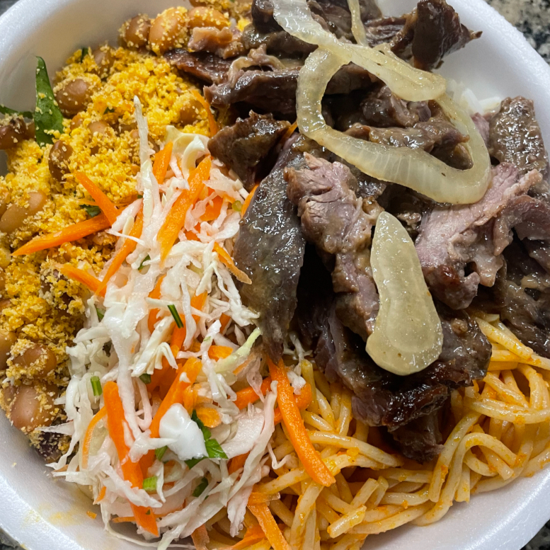 Acompanha: Arroz, feijão (tropeiro ou em caldo) macarrão e salada