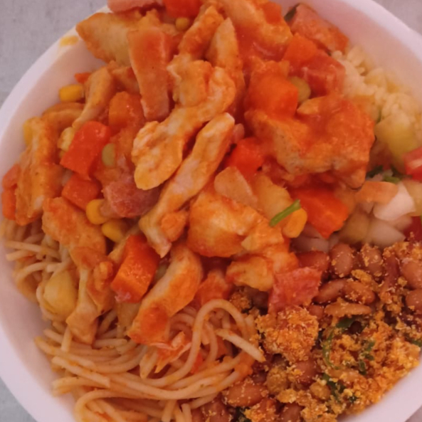Arroz, macarrão, feijão em caldo ou tropeiro