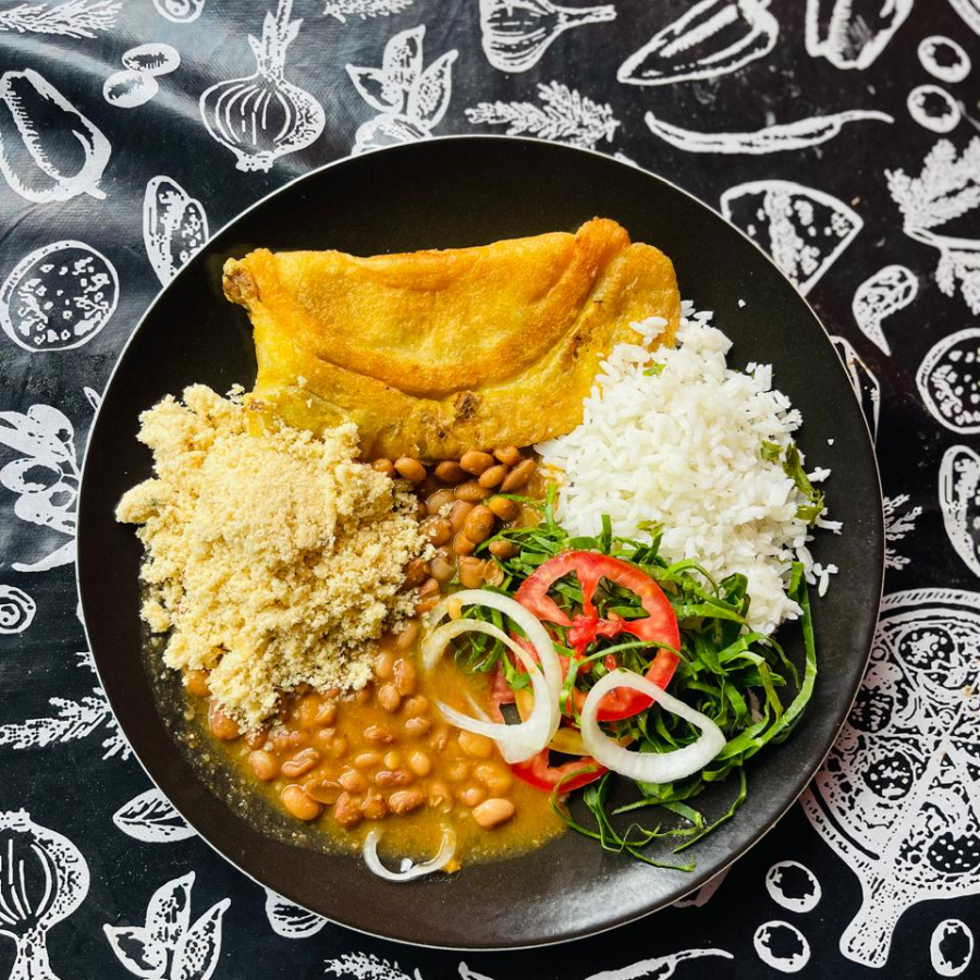 Feijão Tropeiro - Arroz Branco - Salada De Folha Com Tomate - Purê De Aipim