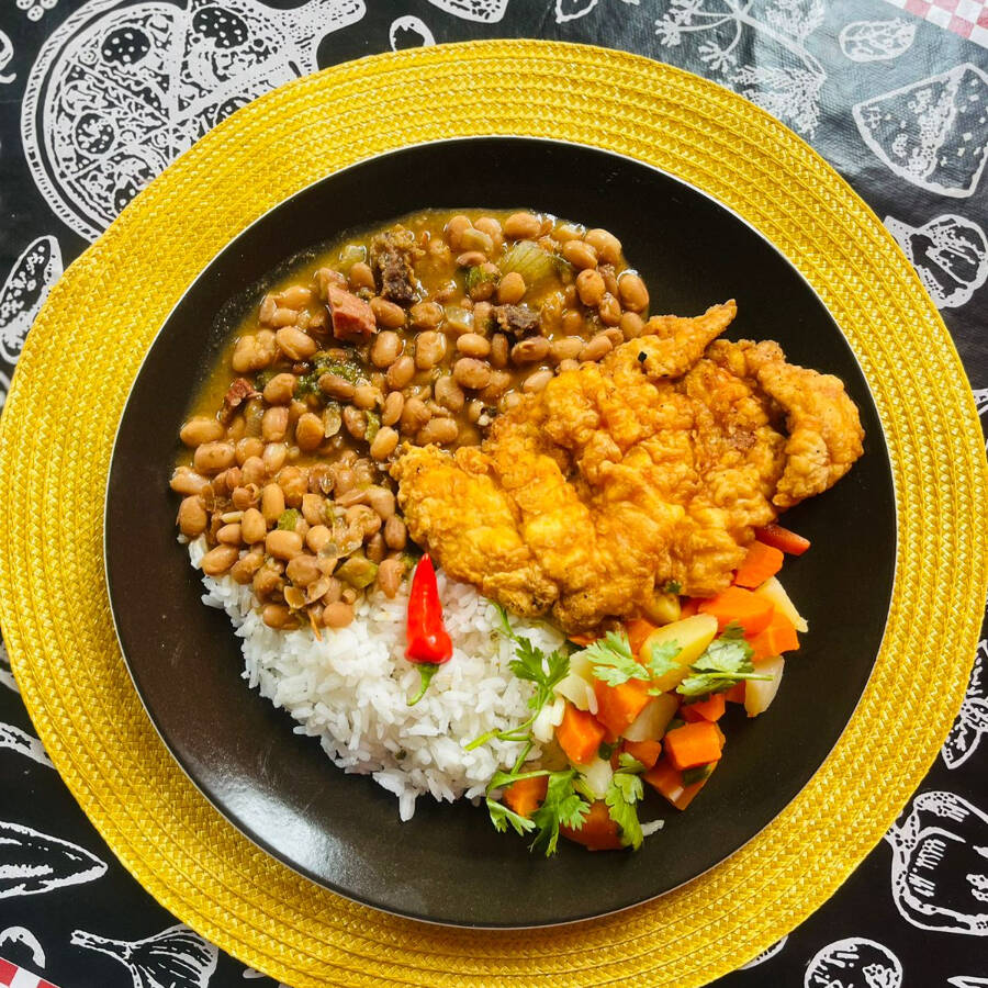 Feijão Tropeiro - Arroz Branco -Salada De Folha Com Tomate - Purê De Aimpim