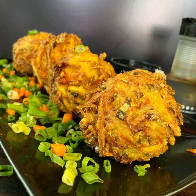 Bolinho de Camarão ( Na massa batata doce, cebola, cenoura e cebolinha )