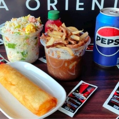 Carne Desfiada Com Cebola+ Arroz Chop Suey+ Rolinho E Refrigerante