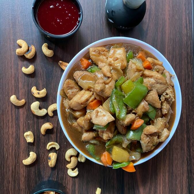 Frango Xadrez com Legumes (cenoura, cebola, pimentão e chuchu) com Castanhas