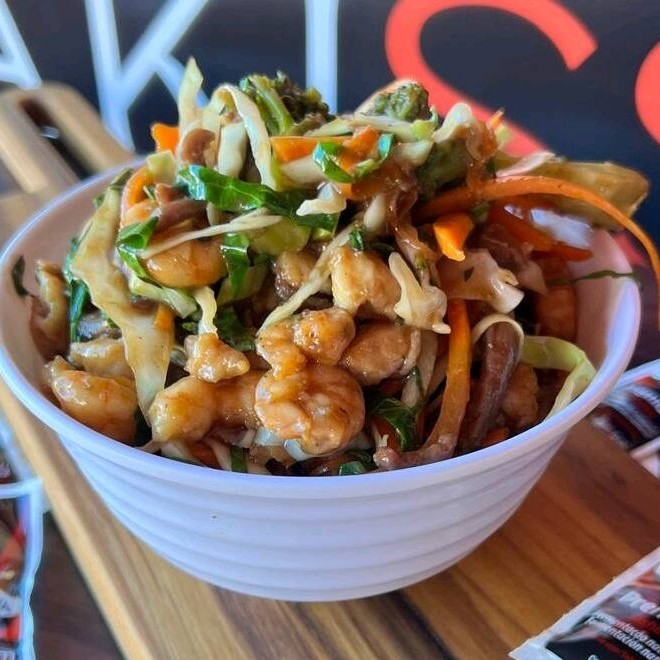 Uma explosão de sabor em cada garfada!! Nosso Yaki turbinado de 1kg é preparado com camarões pistola selecionados, salteados no ponto certo, combinados com legumes frescos e crocantes como brócolis, cenoura, repolho e couve desfiado envolvidos em um delicioso molho oriental.