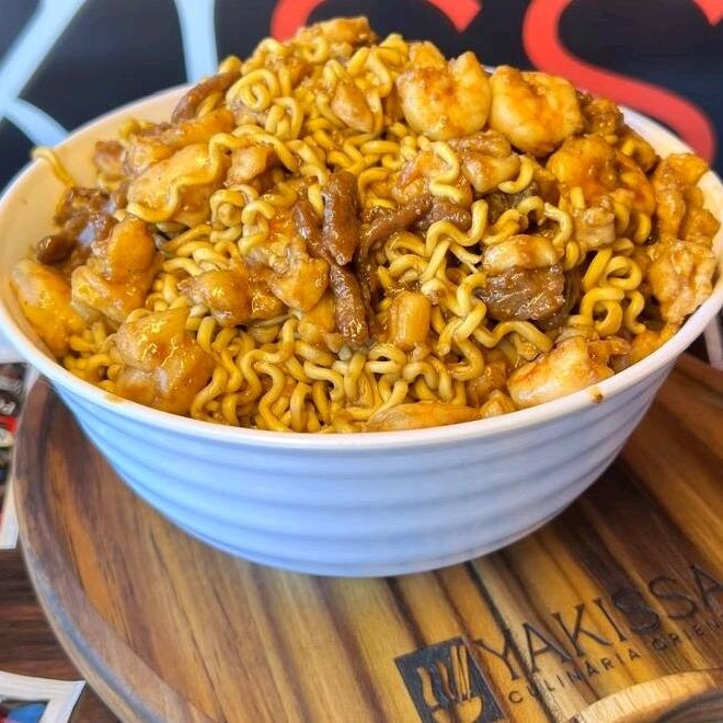 Macarrão de Yakissoba com Carne, Frango, Camarão e Legumes