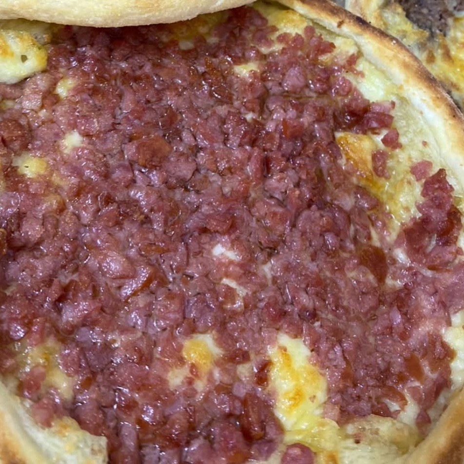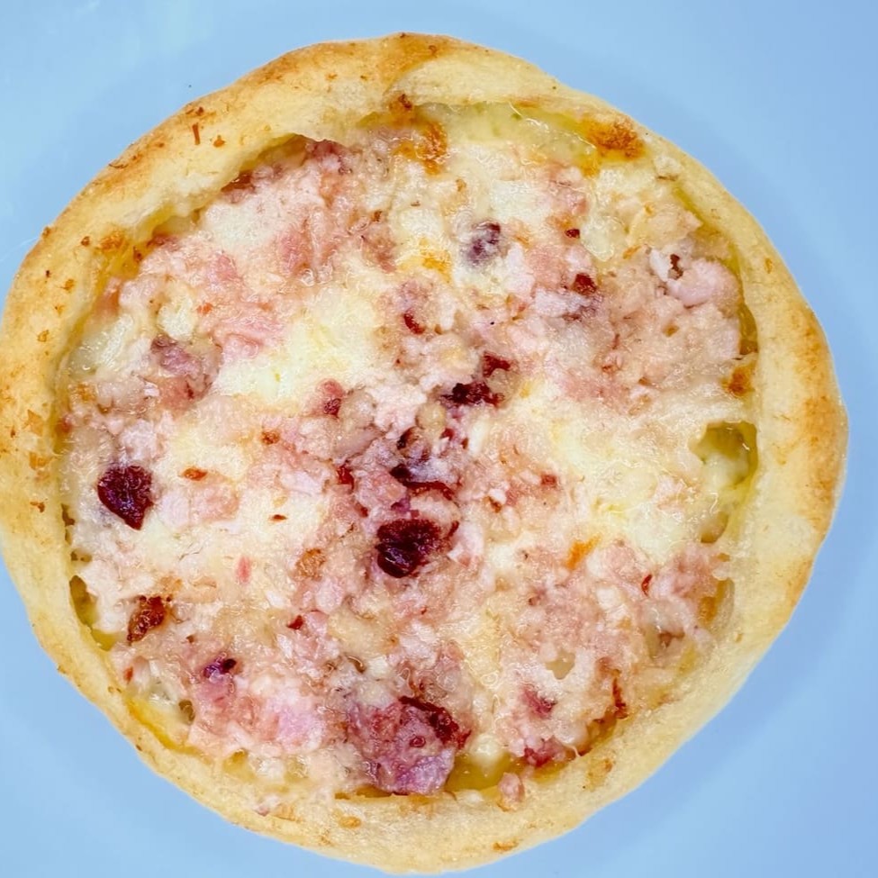 Massa de esfirra C/ lombo canadense, mussarela e creme cheese
