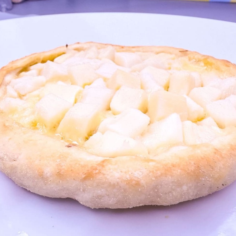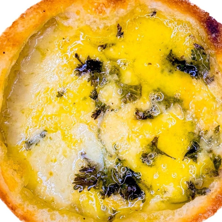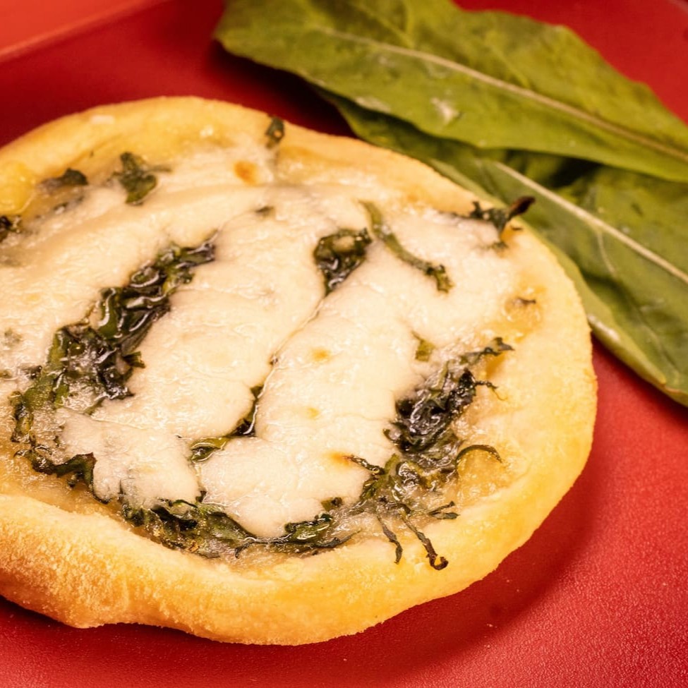 Massa de esfirra C/ queijo gorgonzola, queijo mussarela e creme cheese