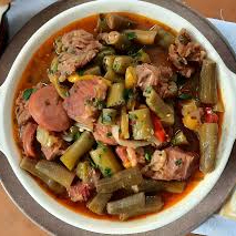 Carne salgada e carne vermelha, calabresa, quiabo, camarão e azeite