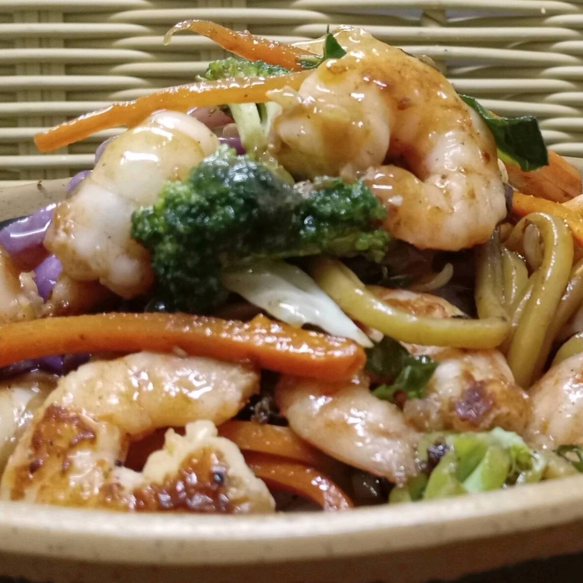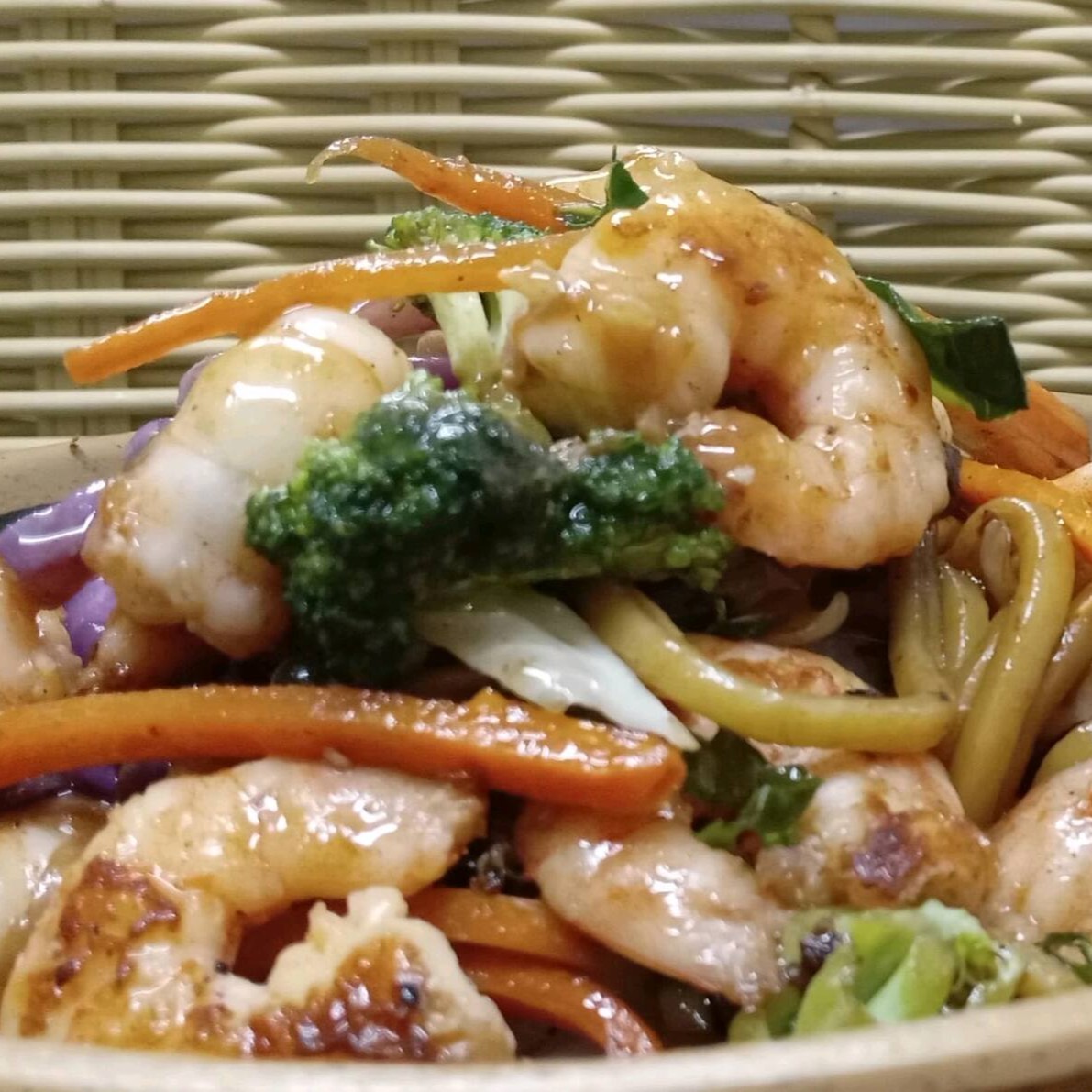 Desfrute de um deliciosos e elegante Yakisoba de Camarão 1kg,legumes variados, Massa regado ao molho Especial, 04 - Harumaki queijo, 01 - refrigerante 1lt Pepsi, Ideal para compartilha,Aconpanha, 02 - Hashi, 02- pote 30 ml cada de molho agridoce!