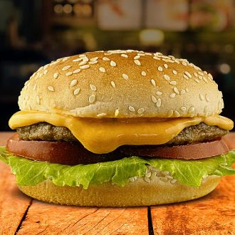 Pão com carne, queijo derretido, presunto e salada fresca.