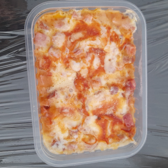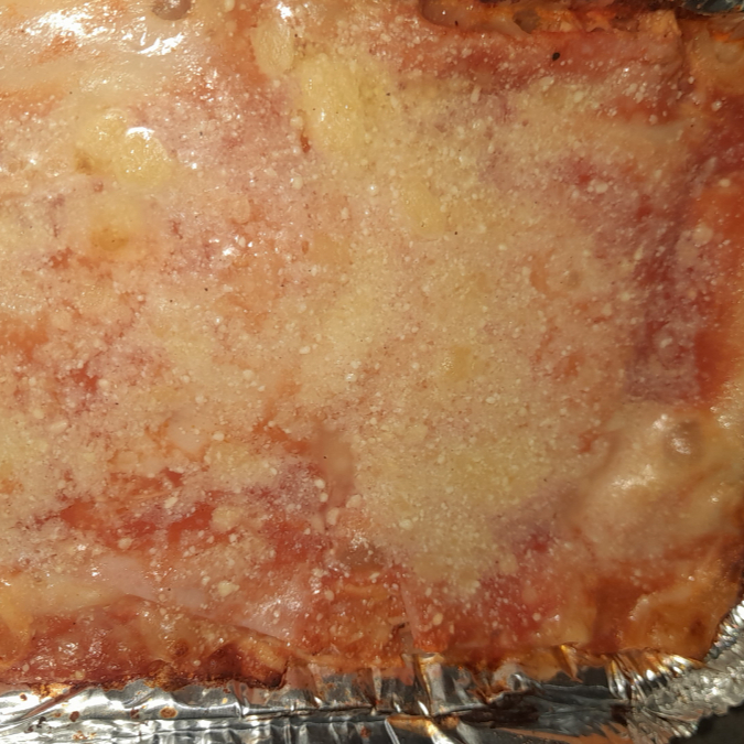 Uma saborosa lasanha, feita com molho, queijo, presunto, uma massa levinha e queijo ralado