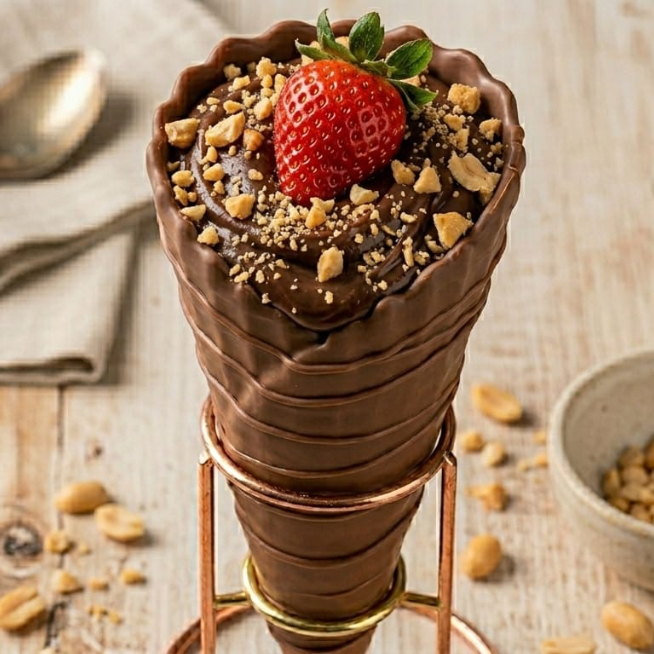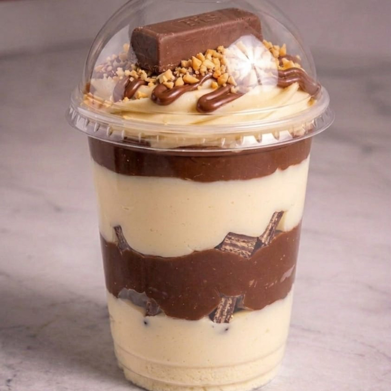 Camadas de creme de Ninho e chocolate meio amargo, com pedaços crocantes de Bis e amendoim torrado triturado. Uma sobremesa irresistível, cremosa e cheia de sabor, perfeita para adoçar qualquer momento!