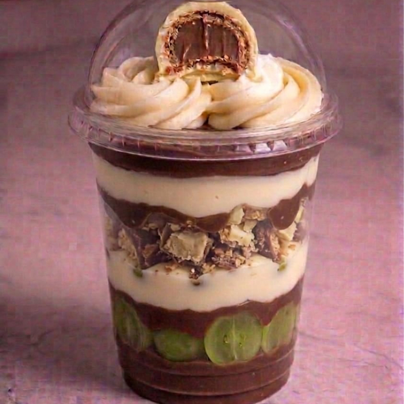 Delicie-se com camadas cremosas de chantilly e Nutella, combinados com morangos fresquinhos e pedaços crocantes de KitKat. Perfeito para se refrescar nesse calor.
