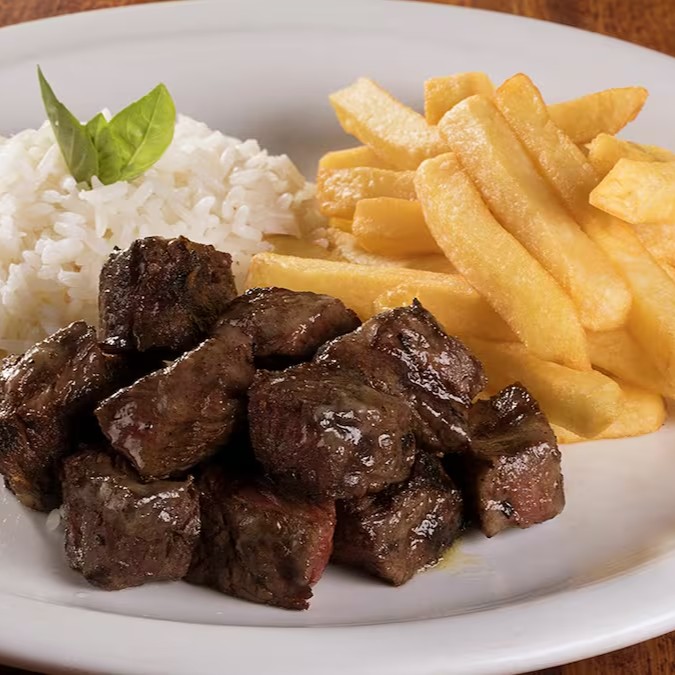 Prato para 3 pessoas. Bifes temperados com o exclusivo tempero Sal e Brasa, empanados e fritos, servidos com queijo muçarela derretido e molho pomodoro por cima. Acompanha 4 guarnições à sua escolha, totalizando 1,2 kg de acompanhamentos.