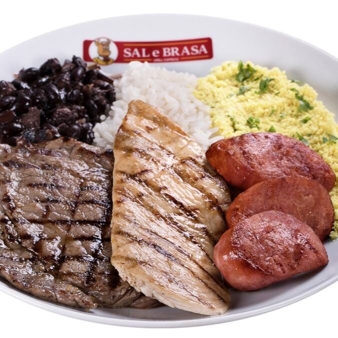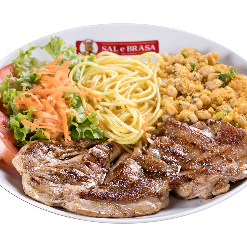 Prato para 3 pessoas. Combinação de três proteínas fatiadas (carne, frango e toscana), temperadas com o exclusivo tempero Sal e Brasa e grelhadas no char broiler. Acompanha 4 guarnições à sua escolha, totalizando 1,2 kg de acompanhamentos.