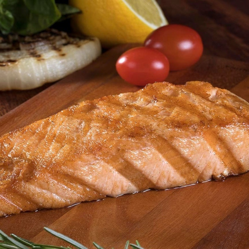 Corte do file de salmão sem a pele com tempero sal e brasa grelhado no char broiler. Refeição é servida com até 3 acompanhamentos a sua escolha.