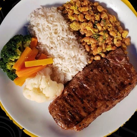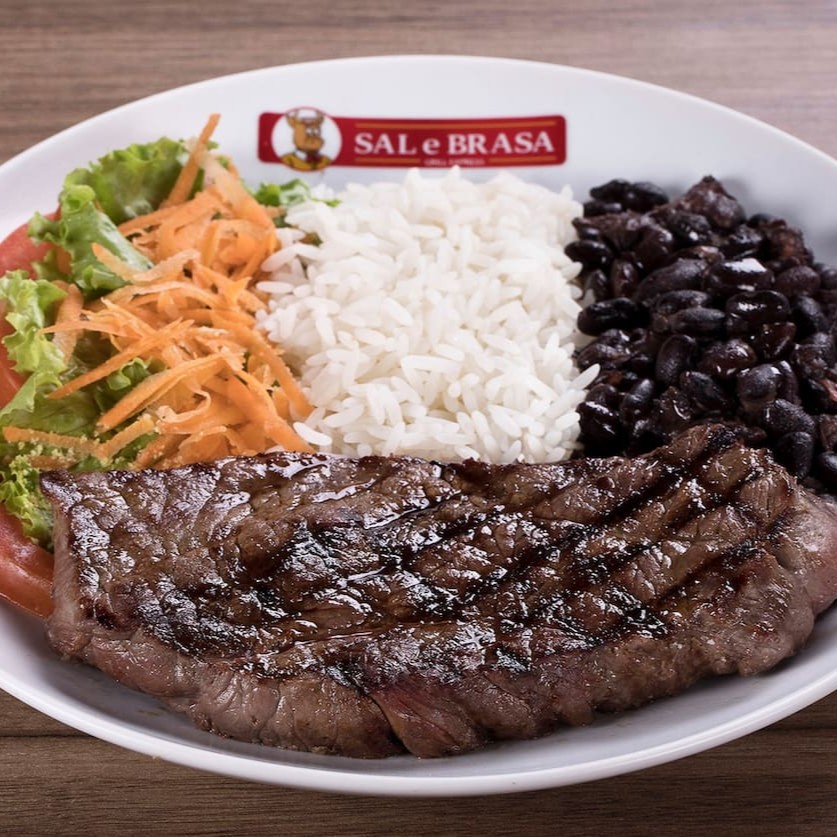 Corte retirado do centro da alcatra com tempero sal e brasa grelhado no char broiler. Refeição é servida com até 3 acompanhamentos a escolher.